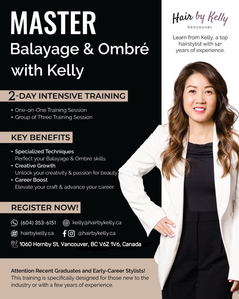 Unlock your complete potential in the enchanting realm of hairstyling with our tailored training programs at hairbykelly.ca. Immerse yourself in the artistry of hair coloring, with a particular emphasis on honing the Balayage and Ombré techniques under the expert tutelage of Kelly. Set free your creativity and fervor for beauty as you set off on a transformative voyage toward mastering the craft and becoming a proficient professional in the industry.